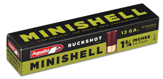 Out of stock Aguila Minishell 12 Gauge - 1.75" - #4 Buck (7 Pellets) & #1 Buck (4 Pellets) - 5/8oz Payload - 1200 FPS - 25 Rounds $26.99 AGUILA