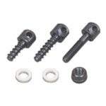 This sling swivel mounting hardware set for bolt action rifles includes a short forend screw for wood, a threaded screw and nut for synthetic stocks (can be cut shorter to fit), a wood screw for buttstock with white spacer, and complete illustrated instructions.
