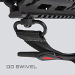 The Tac-Six™ Citadel Double Point Firearm Sling, w/ QD swivel and ladder buckle, provides attachment to GI sling swivels, QD swivels, and other hardware loop systems for fast weapon attachment and removal. Quickly secure your gun sling to your torso with the pull tab forend rapid adjustment system.