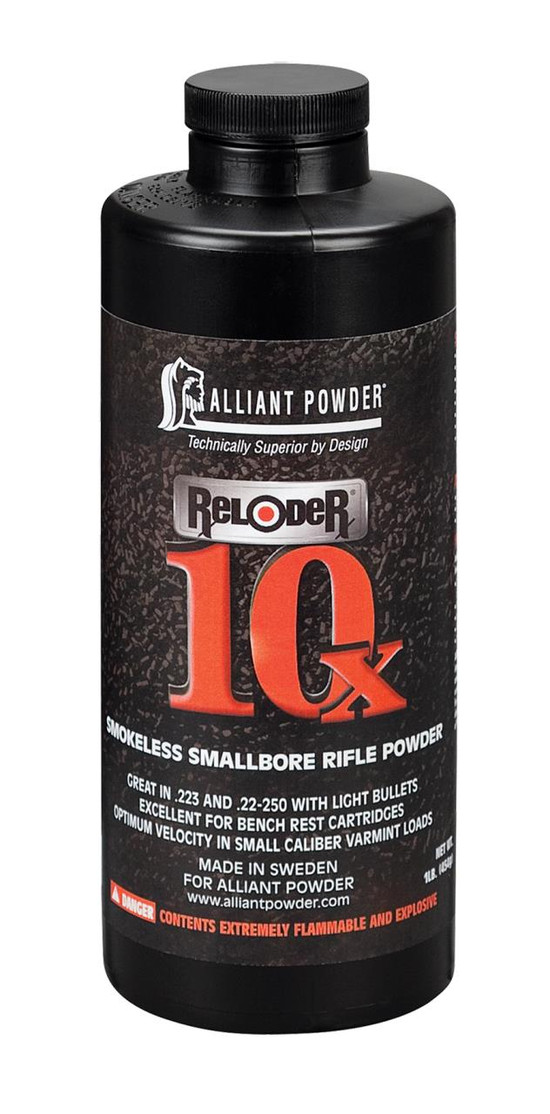 Alliant's Reloder 10x Powder is for light bullet applications in .222 Rem, .223 Rem .22-250 Rem and key bench rest calibers. Also great in light bullet .308 Win loads. Optimum velocity in small caliber varmint and light bullet loads.