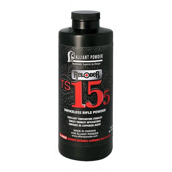 Handload heavy bullets with better precision than ever before. New Alliant Powder® Reloder® TS 15.5 deliversall of the proven performance for whichthe Reloder family of powders is known, with superior temperature stability. The result is extremely consistent velocities across the temperature spectrum.