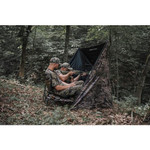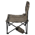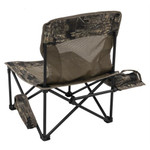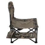 The High Ridge is a folding chair based on the same low-profile concept as the ALPS OutdoorZ Vanish and Vanish MC hunting chairs but with added features intended to give turkey hunters a decisive edge in their gobbler pursuits. Integrated into the chair design is a supported fabric side table. The table accommodates two slate calls with strikers, a call box, and multiple diaphragm calls conveniently located for easy reach. The table and call slots' strategic placement is intended to keep the calls organized and minimize hunter movement. Another welcome feature is a pocket attached to the left-side frame strut. This pocket is designed to hold a ThermaCELL® appliance - a device many turkey hunters use across the southern tier states to repel mosquitos and biting insects. Finally, the High Ridge chair incorporates two shotgun shell loops to facilitate reloading.