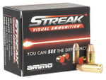 Streak Visual Ammunition features an exclusive patented technology that allows the shooter to visually see the projectiles path toward its target. Streak rounds do not generate heat so they are safe to use in environments where tracers are prohibited and can become a serious fire hazard. For indoor range use and low light shooting.