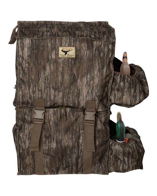 Two stacked six-slot bags, two side pockets for spinning-wing decoys, a gunstock pocket and a vertical barrel strap to keep your waterfowl-hunting essentials organized. Rugged 600-denier polyester fabric teams with 4mm quick-drain mesh bottom to ensure long-lasting service. Padded back support, shoulder strap and hip belt enhance comfort. Full top cover with heavy-duty buckles.
