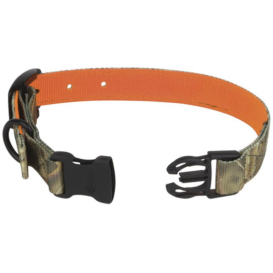 This is the perfect collar for waterfowl dogs that also hunt the uplands. Camouflage on one side and blaze orange on the other, simply turn it around when changing game hunted.