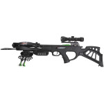 The Bear X Trek 380 crossbow comes ready-to-hunt and delivers top of the line speed, accuracy, and quality at an affordable price. Forged with the hunter in mind, this crossbow offers aggressive power and performance. The stock offers multiple grab locations making this bow easy to maneuver and shoot for various size and age hunters. The Trek 380 is field ready with a 4x32 scope with multi cross-hair reticle with functioning eye piece, 5-arrow quiver, three carbon bolts with field points, cocking rope, and rail lube/string wax.