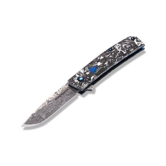 Handle Material-White and Black Marbled Carbon Fiber w/Blue G10 Shield Inlay