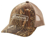 Logo Hat, Max-7 w/ Mesh Back. This cotton and polyester hat showcases an embroidered tan Benelli logo on a Realtree Max-7 camouflage front. The cap also features a tan mesh back to keep your head cool with extra breathability when in the field. The adjustable snap closure makes this hat one size fits most. Show off your Benelli pride in any scenario while staying comfortable with this high quality hat.