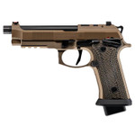 ACCELERATE TO VICTORY WITH THE UNMATCHED PRECISION AND RELIABILITY OF THE 92XI SAO'S RACE LINE, ENGINEERED TO OUTPERFORM THE COMPETITION EVERY TIME ENGINEERED TO DOMINATE THE COMPETITION, the Beretta 92XI SAO SABBIA is packed with features designed to give shooters the edge they need to outperform the competition. At its core, it boasts the X-treme S Trigger, offering a crisp and precise single-action trigger pull for unparalleled accuracy. DLC coated components ensure smooth action, while a lightweight skeletonized hammer and the 92X Performance hammer spring enhance performance even further. With three Mec-Gar® magazines equipped with +4 rounds base pads, competitors can enjoy a total capacity of 22 rounds, ensuring they stay in the fight longer. The frame-mounted safety lever provides added security, while the optics mounting allows for the seamless integration of MRDS sights, offers enhanced targeting capabilities. The FDE anodized frame and Cerakote slide not only add durability, but also give the pistol a sleek and distinctive appearance. The Vertec style frame and LOK G10 Grip Panels ensure a comfortable and secure grip, allowing to maintain control in even the most challenging conditions. Additionally, the black threaded barrel, fiber optic front sight, and black full serrated rear sight further enhance the pistol's performance and versatility. With an extended mag release for quick and easy reloads, the Beretta 92XI SAO Sabbia is the ultimate race gun, ready to take on any competition with confidence and precision.
