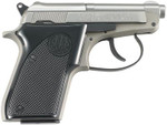 Double action/single action small frame pocket pistol. Tip-up barrel design allows the user to load directly into the chamber. Forged barrel. Slide is fashioned from solid steel bar stock; frame from solid aluminum forgings. Black plastic grips.