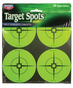 Comes in high visible atomic green. Cosshair design fulfills the needs of open sight shooters along with scope users. Line up your open sights on the center square of lay the crosshairs along the vertical and horizontal diminishing lines. As an additional option, turn the spots slightly for an X-pattern.