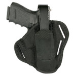 This three-slot pancake design gives you the option of strong-side, kidney or crossdraw mounting options while a reversible/adjustable retention strap with molded thumb break provides reliable weapon security.