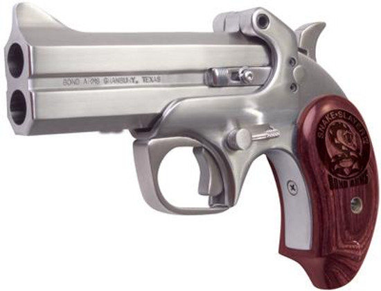 Extended rosewood grips. Will shoot the three inch or two and one half inch .410 shot shells and .45 Colt. Stainless steel construction. Retracting firing pins. Crossbolt safety. Cammed locking lever. Spring-loaded extractor. Will accept 14 interchangeable barrels allowing 24 different cartridges. Extra barrels sold separately.