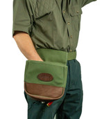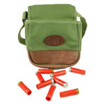 Color: OD GreenWaxed canvas shellTop grain leatherTwo roomy interior compartments for shells and emptiesSturdy adjustable web belt 30"" X 51""Holds 50 shellsZippered Bottom8.5"" x 4"" x 7.5""