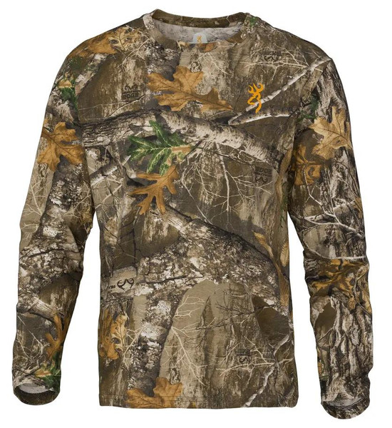 Lightweight cotton crew neck long sleeve T-shirt with SILVADUR™ technology for long-lasting odor control. Regular fit. Available in a variety of camo patterns.