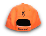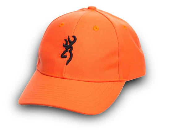 Youth fit blaze orange color classic six panel baseball cap with hook and loop closure.