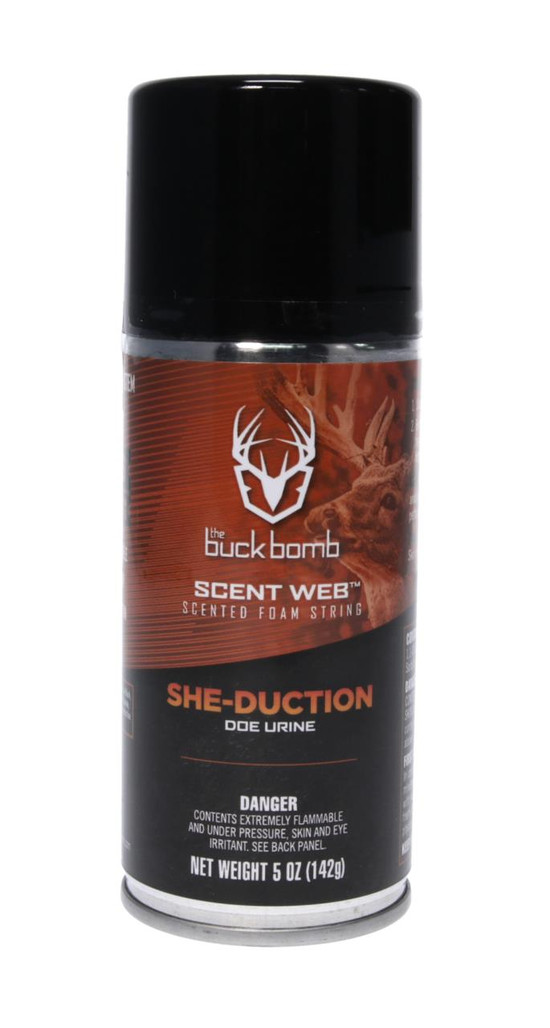 The Hunters Specialties Buck Bomb Scent Web will give you no mess or human scent contamination. This scented foam string is a powerful pre- and post- rut formula that lasts up to 5 days in the field. This is 300% more potent than liquid scents and reactivated with moisture. Spray this on branches, trees, and more while also using it as a cover scent near your stand.