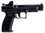 This model includes MeCanik MO1 Red Dot. The Canik brand of firearms is proud to unveil the latest innovation in pistols with the Mete series of handguns. The Mete name pays homage to a legendary Turkish general who is considered by many to be one of the fiercest warriors of all time. This line of pistols undoubtedly lives up to its namesake. Building off of the TP series success, the evolution of this line is based on consumer and engineering suggestions that were found to not only be desired enhancements but also functional improvements. The Mete series is the culmination of years of tireless testing and engineering resulting in a truly impressive end result. Includes is a hard case, two mags, speed loader, IWB/OWB holster, extra backstrap, tool kit & punch, cleaning kits, two optic plates and gun lock.