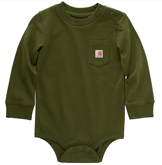 Carhartt is uncomplicated. This babies' bodysuit proves that motto. The patch pocket with a stitched-on logo is all it really needs to get the point across. Soft cotton feels comfortable. And snaps make quick changes fast and easy. End of story.