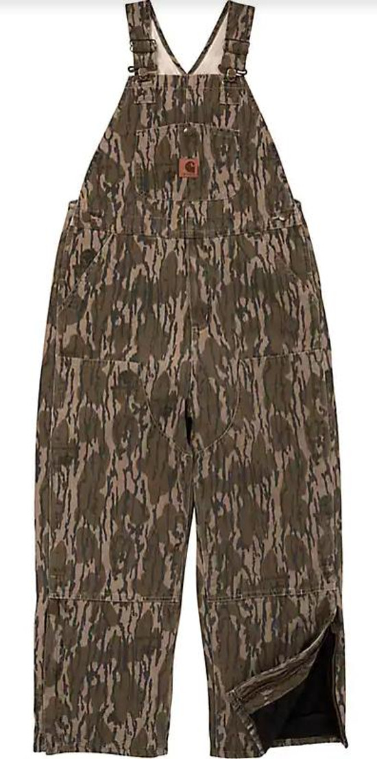 Gear him up for chores or the next hunting trip in these boys' durable and functional overalls. They've got all the Carhartt details like Mossy Oak® Bottomland camo and quilted insulation. Zip them up or down to get them on or off (without taking off those heavy-duty boots he's wearing).