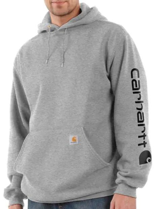 Cut the morning chill with this men's sweatshirt. A traditional cotton blend makes for versatile layering. Carhartt durability and familiar hoodie comfort mean you can strap on your tool belt or relax with equal ease. A midweight cotton blend offers everyday versatility.
