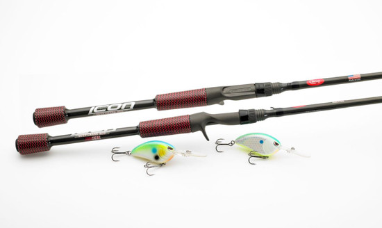 Using our American sourced pre-preg with an engineered and upgraded epoxy; we have created one of the lightest rod blanks on the market today. Our ICON blanks are un-sanded, which helps protect the blank with an epoxy encapsulation on top of adding a signature look with added impact resistance. The John Crews ICON Deep Cranking rod still has the signature red/black Cashion carbon fiber / fiberglass. We've added American Tackle components, such as the micro-wave guides to not allow wasted energy and give you even more distance on your casts. A comfortable exposed reel seat that cover's the rivets, but does not sacrifice the feel of the bite in any way.