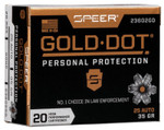 Our original Gold Dot line remains a benchmark for both self-defense and duty use, and it's earned the trust of law enforcement world-wide. It features a pressure-formed lead core that's bonded to an extremely uniform jacket a single atom at a time. This virtually eliminates separation on impact for more retained weight and penetration to crucial depths. Its Gold Dot hollow-point design expands consistently through the full range of barriers. Ignition and cycling are guaranteed thanks to sealed primers and nickel-plated brass.
