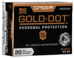 Our original Gold Dot line remains a benchmark for both self-defense and duty use, and it's earned the trust of law enforcement world-wide. It features a pressure-formed lead core that's bonded to an extremely uniform jacket a single atom at a time. This virtually eliminates separation on impact for more retained weight and penetration to crucial depths. Its Gold Dot hollow-point design expands consistently through the full range of barriers. Ignition and cycling are guaranteed thanks to sealed primers and nickel-plated brass.