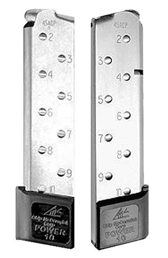 Chip McCormick's original 10-round design was hugely successful due to its sleek, compact design and reliability. If you liked the original 10 round magazines you'll love the Power 10. The Power 10 magazine is designed to incorporate an additional three (3) coils of the aerospace grade rocket wire spring. This huge increase in spring power advances the reliability and service life of the Power 10 to a whole new level. The redesigned integral base pad/base plate and shroud is completely removable for convenient cleaning and maintenance. Also available in 8 round capacity.