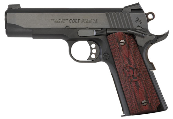 The Colt Lightweight Commander affords enthusiasts the ability to concealed carry a real 1911 platform pistol comfortably. With a shorter profile and lower weight than a traditional full size Government Model, the Lightweight Commander offers the Dual Spring Recoil System and custom Colt G10 grips, among other enhancements. This 45 ACP pistol also features 80 series firing system, an undercut trigger guard and upswept beavertail, allowing shooters a higher grip for enhanced comfort and accuracy. It also has custom black cherry Colt G10 stocks complete the package.
