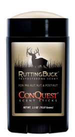 RuttingBuck is 100% urine collected from superior breed bucks with high concentrations of testosterone. Use RuttingBuck during pre-rut, rut, or post-rut in active scrapes, on licking branches, and on rubs to challenge the dominant buck's territory by triggering their dominant instinct.