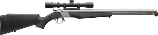 The Wolf V2 is our break-action muzzleloader, a fully ambidextrous LOP adjustable stock make it the perfect gun for righties, lefties, adults and children. Features CVAs QRBP (Quick-Release Breech Plug); the break-action breech opens easily with just a touch of the breeching button, which is located in the front of the trigger guard; the barrel is compact and quick pointing and made of corrosion resistant stainless-steel. CVAs solid aluminum PalmSaver ramrod is standard equipment on all Wolf V2 models. Includes a DuraSight one-piece scope mount, KonusShot 3-9x32mm, soft case and AeroLite PowerBelt bullets.