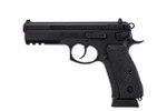 The CZ 75 SP-01 is the first full size handgun (4.6" bbl) from CZ to feature the improved manufacturing technology and ergonomics of the NATO-approved CZ 75 Compact P-01 model. Featuring an integral 1913 accessory rail on the dust cover, rubber grip panels, and CZ's corrosion resistant black polycoat finish, the SP-01 is the newest model to join the family of pistols based on the CZ 75 (SA/DA) platform. Borrowing from the improved grip geometry of the compact P-01, the SP-01 utilizes an extended beavertail to protect shooter's strong hand as well as allowing for a deeper and more secure grip. The new grip geometry, checkering in key areas on the front and back straps, and redistribution of mass provided by the accessory rail noticeably decrease the perceived recoil from previous models and allows for more rapid target acquisition and transition.