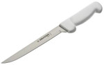 The Dexter Russell Basic Fillet Knife is a very long and flexible boning knife that is used to fillet or prepare fish. Blades are longer and more flexible than traditional boning knives so that they move easily along the backbone and ribs and under the skin of fish. These Basic Fillet Knives have handle grips made of White Polypropylene.