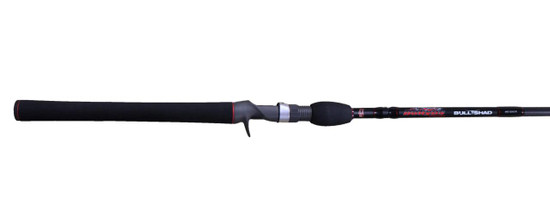 Mike Bucca has been a long time staffer and close friend of Gary's since Dobyns Rods first started. Mike's love for swimbait fishing led him to start his own swimbait company back in 2007. He named his baits and company Bull Shad. These baits quickly filled a niche in the swimbait world. The Bull Shad baits range from 4" to 11" and are super popular with swimbait anglers today. Mike has wanted a special rod that'll throw all of his baits in the larger 6"" to 11"" sizes and now the Bull Shad rod has been made. It's a Mike Bucca signature series Bull Shad rod made to handle his popular larger baits. This rod has a unique length at 8'3" with a full 14" handle. This rod is called a fast action but it's on the slower side of fast, making it an excellent casting swimbait rod. The MB 836SB Bull Shad Special is sure to be a big hit in today's popular swimbait industry.