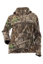 The ultimate combination of function and comfort, the Breanna fleece camo pullover is made of a quiet, bonded stretch fabric with a soft shearling interior. This fabric is DWR treated to help shed water to keep you warm and comfortable. The Realtree Edge® or Realtree Excape™ camouflage is used so you can blend into your environment at close range, and from a distance.