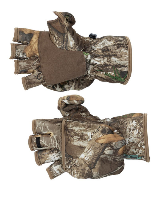 Designed with hunters in mind, DSG Outerwear's Sherpa Flip Top Mittens combine comfortable Polyester/Spandex stretch fabric bonded with a cozy shearling interior, providing you with unparalleled warmth and comfort during your hunting trips. The faux leather palm adds durability to the mittens, ensuring that they can withstand the wear and tear of your hunting gear. While magnets securely hold back the flip top mitt portion and thumb, providing hunters with the flexibility needed to handle hunting equipment with ease. Glove clips keep the mittens together for easy storage, ensuring that the mittens remain a pair.