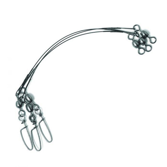 Black Steel Leader with Coastlock Snap and Crane Swivel available in varous length and test options.