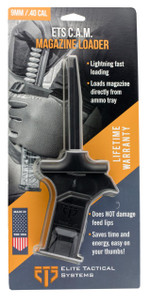 ETS C.A.M Loader loads pistol mags in seconds. It works idealy with 9mm and .40 caliber pistol mags, double or single stack, and also picks up rounds from an ammo tray. The mag loader is constructed of an extremely durable polymer and easily fits in your range bag.