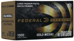 Gold Medal primers are manufactured to exacting tolerances, providing the same high-quality components and optimum ignition that make Federal Premium Gold Medal cartridges the choice of match shooters everywhere. This primer is compatible with Large magnum pistol calibers like 500 Linebaugh, 475 Linebaugh and many more.