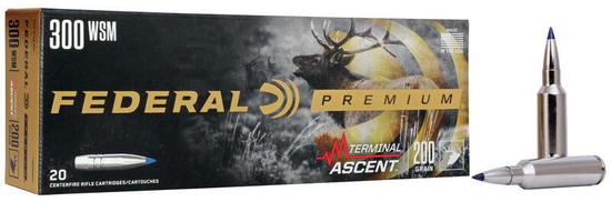 Any hunt. Any range. Go beyond what you ever thought possible with Federal Premium® Terminal Ascent™. Bonded construction penetrates deep on close targets, while the patented Slipstream™ polymer tip initiates expansion at velocities 200 fps lower than comparable designs. The bullet's long, sleek profile offers an extremely high ballistic coefficient, and its AccuChannel™ groove technology improves accuracy and minimizes drag. Available in a full selection of long-range hunting cartridges.