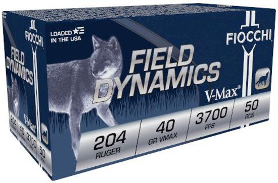Fiocchi Field Dynamics 204 Ruger - 40 Grain V-MAX - 3700 FPS - 50 Rounds