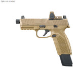 The FN 509® Tactical, an extension of the FN 509 family, is based on FN's submission pistol that the U.S. Army tested for its Modular Handgun Trials, but includes the significant improvements to the design that were implemented in the FN 509. The pistol features the company's U.S Patent No. 10/352,654 Low-Profile Optics Mounting System™ that enables the platform to accept more than ten commercially-available miniature red dot (MRD) optics that co-witness with the suppressor-height night sights and remain adaptable to future optics releases with no requirement of direct milling of the slide. The slide cap, for use when not shooting with an optic, has raised sight wings that protect iron sight alignment if the pistol is dropped or jostled, and provides a textured ramp for racking the slide against a belt loop, pant pocket or boot. An FN-signature 4.5-inch, cold hammer-forged, stainless-steel barrel with target crown, ½" x 28 threads that accept the bulk of 9mm suppressors available and thread cap with integrated O-ring to prevent loosening during use complete the top end. Lastly, the 24-round magazines, nearly identical in length to the pistol's slide, maximize ammunition capacity without impacting carry convenience.