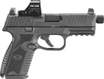 FN 509 Midsize Tactical is red dot and suppressor-ready with the added option of a 24rd magazine for higher round-count training sessions. Features FN Low-Profile Optics-Mounting System; Suppressor-height 3-Dot night sights; external extractor; loaded chamber indicator; flat faced trigger; fully ambidextrous controls; MIL-STD-1913 accessory mounting rail; cold hammer-forged stainless steel barrel with a recessed target crown; combat-style sights and improved front and rear cocking serrations. Includes Holosun 407C, two magazines, case, locking device and owners manual.