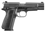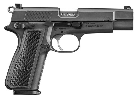 At 40-oz., the robust design keeps the signature rake of the dust cover and long arm slide release, adding ambi-controls for instinctive operation. An extended beavertail and raised hammer fit perfectly in hand. The FN High Power takes down instantly for maintenance, deletes the magazine disconnect, and ensures that most modern factory loads feed smoothly over the polished ramp of the cold hammer forged barrel.