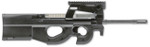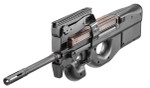 Semi-auto only. Closed bolt blowback operation. Hammer-forged chrome lined barrel with ported muzzle brake. Bottom ejection port. Alloy upper receiver and barrel support. Synthetic thumbhole bullpup design stock with forward handstop and molded-in rear sling attachment point. Ambidextrous charging handle. Sliding trigger. Ambidextrous safety switch inside trigger guard. Enlarged trigger guard. Ambidextrous magazine release. Translucent polymer body magazine. Mill-STD accessory rail and back-up iron sight.