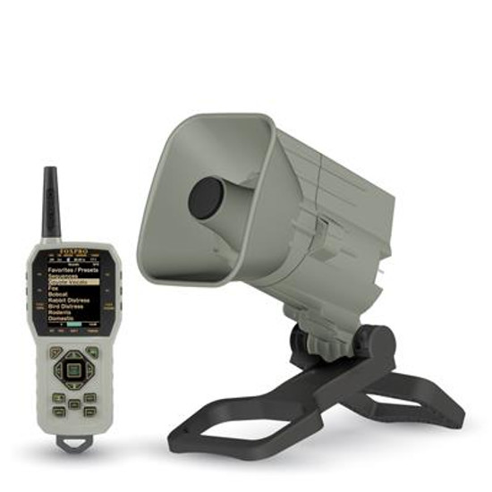 The FOXPRO X24 is a powerful and compact unit that features a positional Xtreme High Definition (XHD) speaker. The XHD speaker is a horn speaker with an added tweeter for improved frequency response. The XHD speaker system allows for extreme volume capabilities and realistic sound clarity. The X24's handle folds out into a positional stand to provide elevation over various terrains that you might encounter. There is 1 external speaker jack if you desire even more volume, an auxiliary jack to connect an approved device such as a Jack Predator Decoy, and a charge jack. The X24 comes with 100 high-quality FOXPRO sounds and over 100 sounds from FOXPRO's Free Sound Library, with the ability to store and access up to 1000 sounds. The X24 comes complete with a lithium battery and charger kit in the box! The TX-1000 features a full color graphic LCD screen, which displays your sound list or sound categories. It also has a barometer indicator, moon phase indicator, temperature indicator, battery level indicator, timer or time clock, FOXBANG technology and much more. FOXMotion allows you to fade the sound from the left speakers to the right speakers to help "sell" the reality of your call sounds. FOXCast allows you to play a pre-set custom sequence to include your favorite sounds, volume levels, and even pauses. FOXData allows you to record real time information from each and every stand so you can access the data for future reference. The X24 is backed by a 5 year limited warranty and FOXPRO's unmatched customer support and is proudly made in the USA.