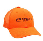 Description: Franchi Embroidered Logo Hat, Blaze Orange. Let others know you're a part of Team Franchi with one of these ventilated, six-paneled caps. This blaze orange cap features a black embroidered Franchi logo on the front and orange mesh back. One size fits most with adjustable back strap.