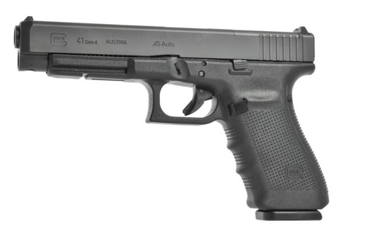 The GLOCK 41 Gen4 is a practical/tactical .45 AUTO caliber pistol designed with the superior engineering of GLOCK to maximize sight radius while improving weight distribution and balance. The longer barrel and slide help to reduce muzzle flip and felt recoil while the longer sight radius provides better accuracy for competition or duty use. Also available in MOS configuration.