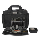 The GPS TACTICAL Range Bag is designed to offer the majority of its storage space for handguns. This range bag comes equipped with an internal foam cradle that holds 5 handguns. The guns are held in a vertical position that allows for easy access and use at the range, along with added protection surrounding the gun. The pistol cradle is crafted from closed cell foam that won't absorb moisture and is precision cut by a CNC machine. The bag's front pocket unzips to drop flat to provide a working surface at the range and comes equipped with 6 specialized magazine pockets, a padded handgun sleeve, and 2 ammo dump cups. The range bag can be securely locked using the lid grommet and shoulder strap attachment. At the top center of the range bag, a hook and loop area provides space for you to place morale patches or a club placard. The Tactical Range Bag provides plenty of storage for your handguns for a long day at the range.
